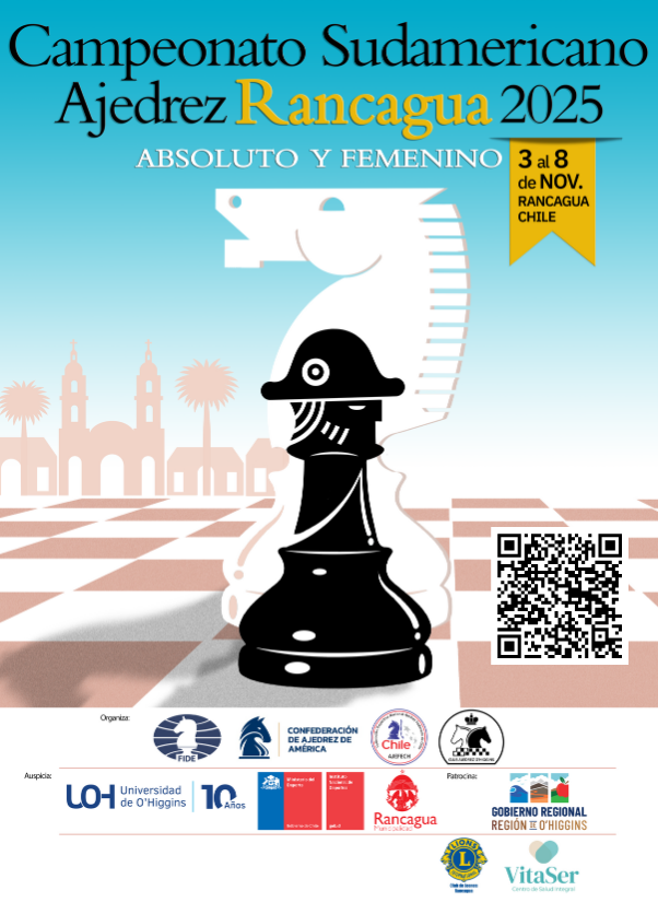 El sábado 08 de noviembre finalizó el Campeonato Sudamericano Absoluto y femenino 2025 que se realizó entre el 3 y 8 de este mes en la ciudad de Rancagua y que convocó a 120 ajedrecistas provenientes de 8 países de Sudamérica.