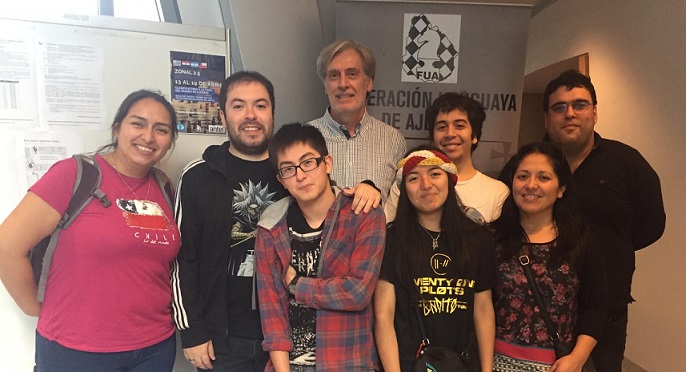Delegación Chilena en Torneo Zonal 2.5 junto al Cónsul de Chile en Montevideo: WFM Paula Reyes, MI Pablo Salinas, MF Sebastián Donoso, Eugenio del Solar - Cónsul de Chile en Montevideo. WIM Javiera Gómez, GM Cristóbal Henríquez, Paola Barrera y Mauricio Adasme.