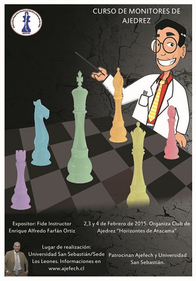 Entre el pasado 2 y 4 de Febrero el Club de Ajedrez Horizontes de Atacama en conjunto con AJEFECH y la Universidad San Sebastián organizaron el primer curso de capacitación del año orientado a Monitores de Ajedrez.