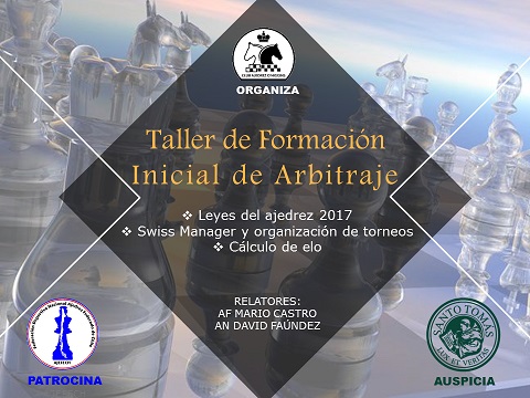 En la ciudad de Rancague se realizará los días sábado 4, 11 y 25 de Noviembre próximo un Taller de Formación Inicial para personas interesadas en la disciplina de Arbitraje en Ajedrez.