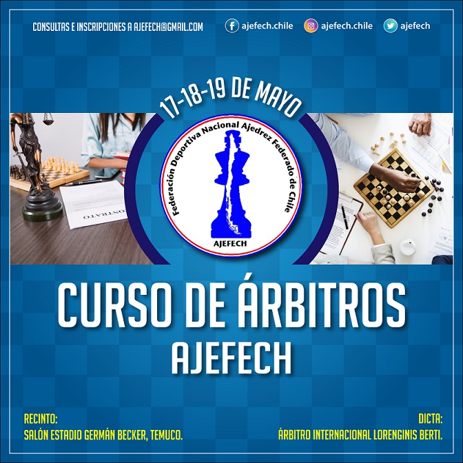 En la ciudad de La Serena y organizado por el Club de Ajedrez Mate de Caballo y Bobby Fischer de la IV región del país se llevará a efecto el Curso de Capacitación para optar a los títulos de Arbitro Nacional y Regional AJEFECH.