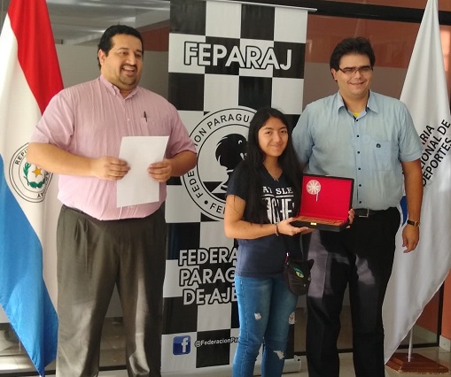 WIM Javiera Gómez recibe su premio por el título de Campeona Sudamericana Juvenil 2019