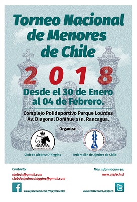 La Federación de Ajedrez de Chile en conjunto con el Club de Ajedrez O'Higgins de la ciudad de Rancagua organizaron el Torneo Nacional de Menores entre el 30 de Enero y el 4 de Febrero de 2018.