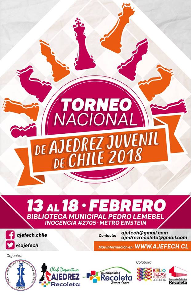 TORNEO NACIONAL DE AJEDREZ JUVENIL DE CHILE 2018Biblioteca Municipal Pedro Lemebel - I. Municipalidad de Recoleta - 13 al 18 de Febrero 2018