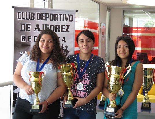 Ganadores Serie Damas: Catalina Zuñiga (3°), Macarena Lemus (2°) y Javiera Gómez (1°) |