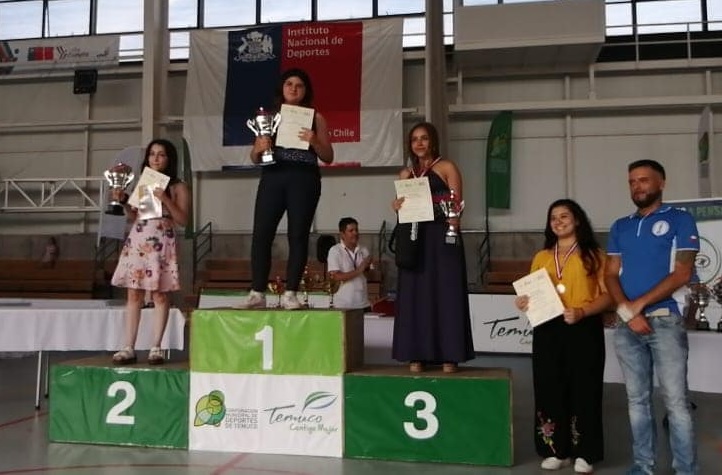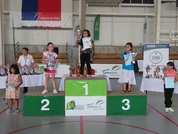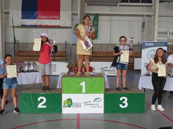 Premiación Serie FEMENINO: 1° WIM Javiera Gomez Barrera, 2° Melisa Aguilera Merlet y 3° Constanza Hormazabal Figueroa |