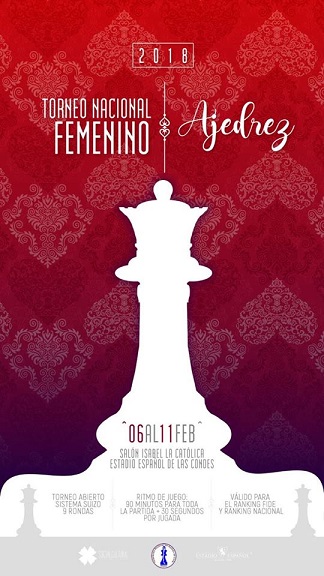 La Federación de Ajedrez de Chile en conjunto con la Rama de Ajedrez del Estadio Español de Las Condes organizaron entre el 6 y 11 de Febrero pasados la versión correspondiente al año 2018 del Campeonato Nacional Femenino de Chile. El evento otorgó 2 plazas para la Olimpiada de Ajedrez de Georgia además de determinar a la Campeona de Chile de la categoría adulta del año.