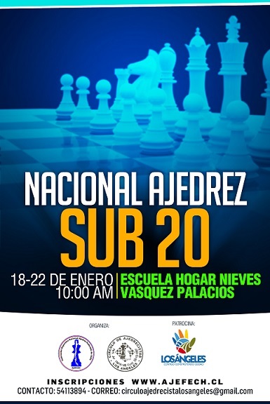 La Federación Deportiva Nacional Ajedrez Federado de Chile (AJEFECH) en conjunto con el Circulo de Ajedrecistas de Los Angeles y la Ilustre Municipalidad de Los Ángeles organizaron los Campeonatos Chilenos de Ajedrez 2016 para las categorías Menores de 20 años entre el pasado 18 y 22 de Enero de 2016. El evento se realizó en el Liceo Nieves Vasquez de la Ciudad de Los Angeles, VIII Región, consistiendo en dos torneos paralelos (Absoluto y Femenino) ambos en formato de Torneo Sistema suizo 9 rondas, ritmo de juego 90 + 30. En la serie Femenino resultó campeona la jugadora de Valdivia de 14 años JAVIERA GOMEZ BARRERA, con un total de 8,5 unidades de 9 posibles siendo seguida por VALENTINA VARGAS BANDA (Puente Alto) con 8,0 unidades y MELANY VILDOSOLA CANALES (Chillán) con 7 unidades. El la serie Absoluto el primer lugar fue para el jugador local CARLOS SQUELLA LAVIN (Los Angeles) quien con 7,0 unidades superó por desempate a CRISTIAN AGUIRRE CONTRERAS (Santiago), mientras que el tercer lugar fue para el MI CRISTOBAL HENRIQUEZ VILLAGRA (Santiago) con 6,5 puntos.