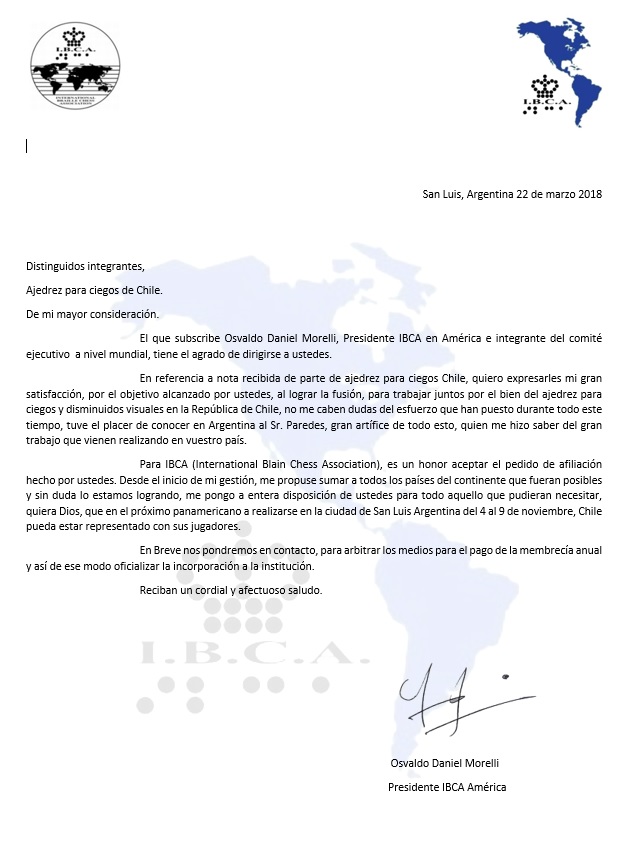 Chile se incorpora al circuito IBCA a través de laAsociación Chilena de Ajedrez Social y Terapeutico |