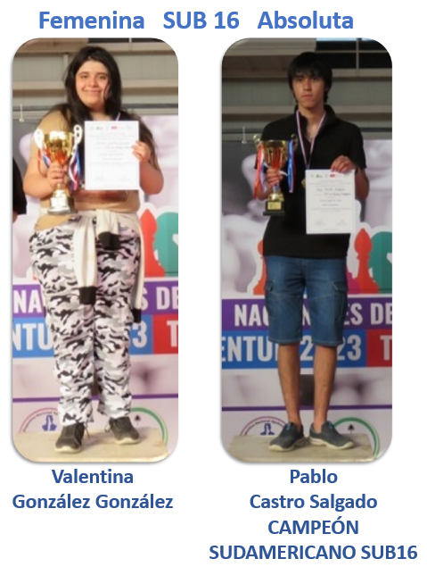- Los primeros lugares de cada categoría tendrán el derecho de representar a Chile como jugadores Oficiales en los torneos Sudamericano, Panamericano y Mundial de la categoría a desarrollarse durante el año 2024 (*). Lo anterior, no compromete el pago de los costos y gastos que demanda la participación en toda y cada una de las competencias señaladas. El eventual apoyo que perciban los deportistas oficiales queda supeditado a la obtención de recursos para dicho fin por parte del IND.