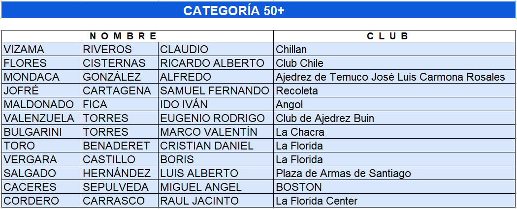 Podrán participar todos los ajedrecistas con nacionalidad chilena o bien registrados en FIDE por la Federación Chilena de Ajedrez (tener en FIDE bandera de Chile).
