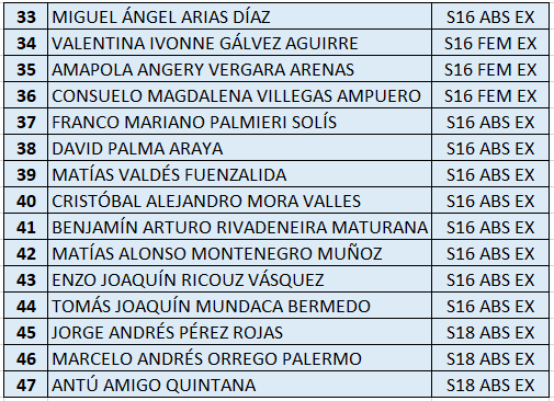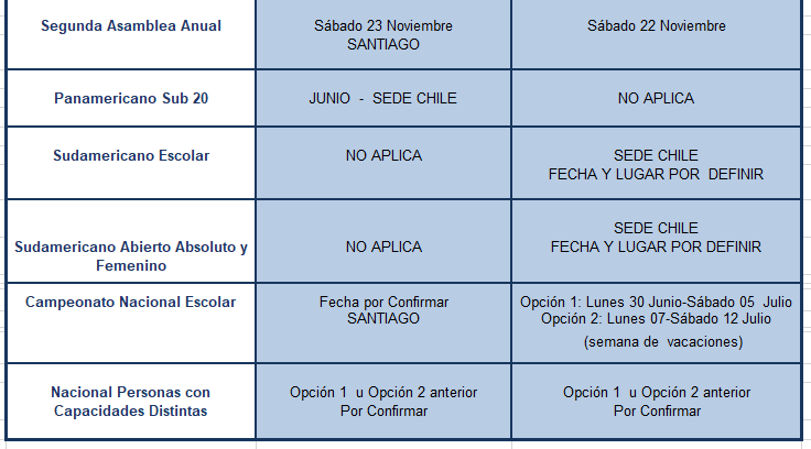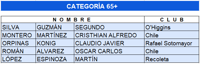 (*) Para el derecho a representación Oficial, los deportistas deberán cumplir requisito mínimo de partidas y estar presentes en una cantidad a definir de sesiones de entrenamiento a distancia y/o presencial. Ambos requisitos se definirán en el mes de febrero y se darán a conocer a los deportistas.