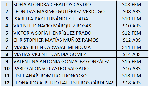 * Sub 12 Femenino y Absoluto (Nacidos en 2012 o posterior)