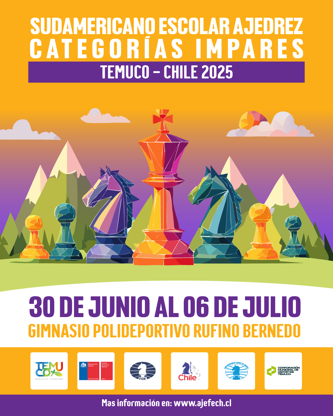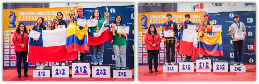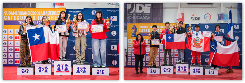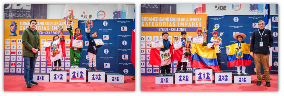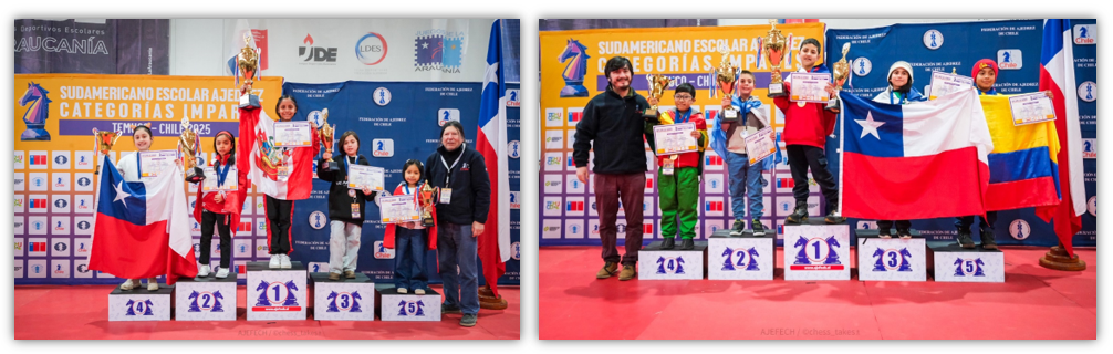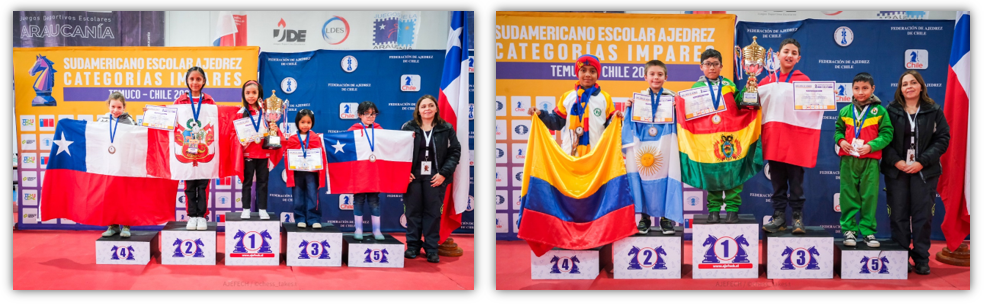 La Federación Deportiva Nacional de Ajedrez de Chile FDN ha tenido el privilegio de organizar por primera vez en nuestro país el CAMPEONATO SUDAMERICANO DE AJEDREZ ESCOLAR - CATEGORÍAS IMPARES 2025. El evento, organizado en conjunto con la Confederación de Ajedrez para América (CCA) y el valioso apoyo del Instituto Nacional del Deporte en la Región de la Araucanía y la Municipalidad de Temuco.