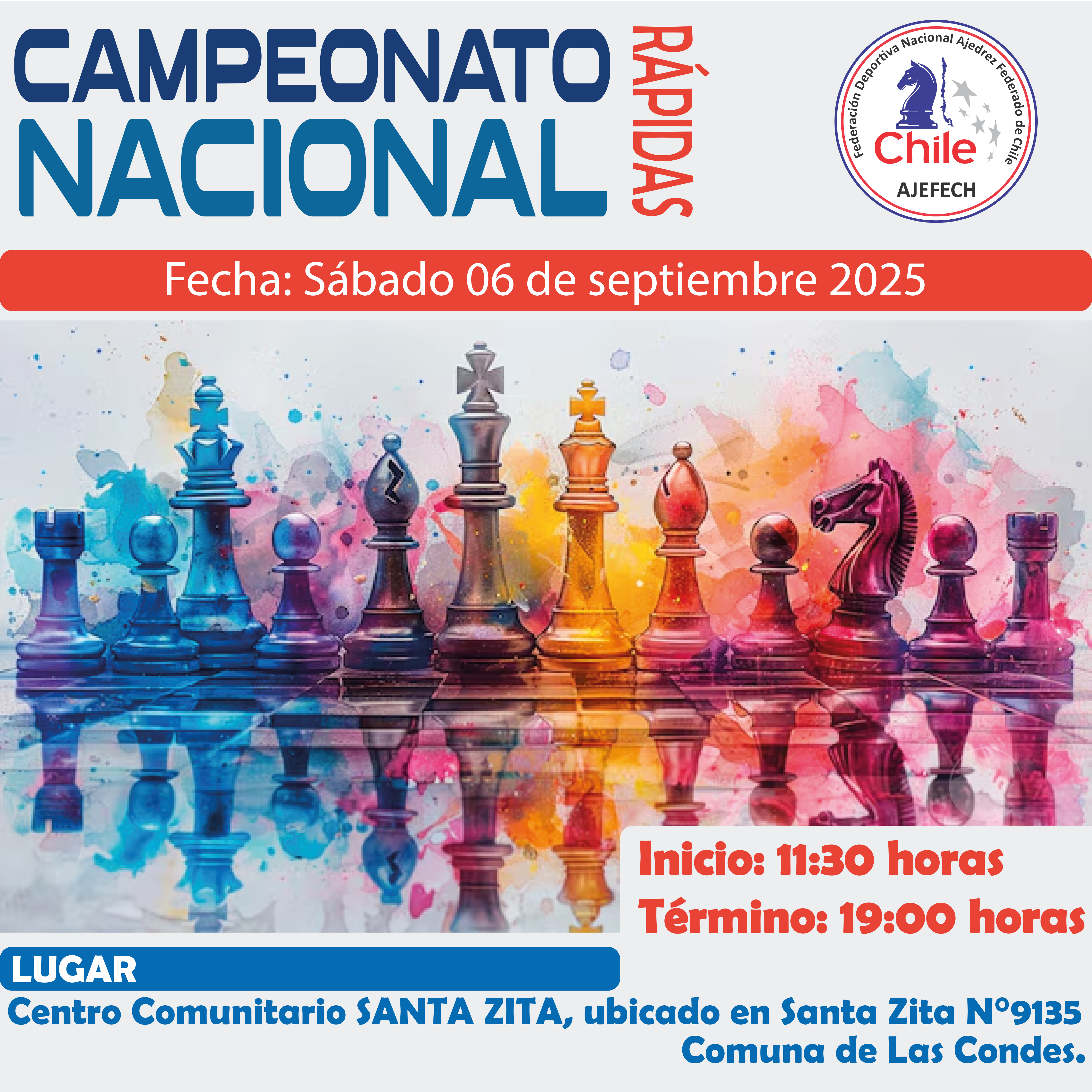 La Federación de Ajedrez de Chile FDN, invita a toda la comunidad ajedrecística a ser parte de este evento, que determinará al Campeón Nacional de Ajedrez Rápido 2025.