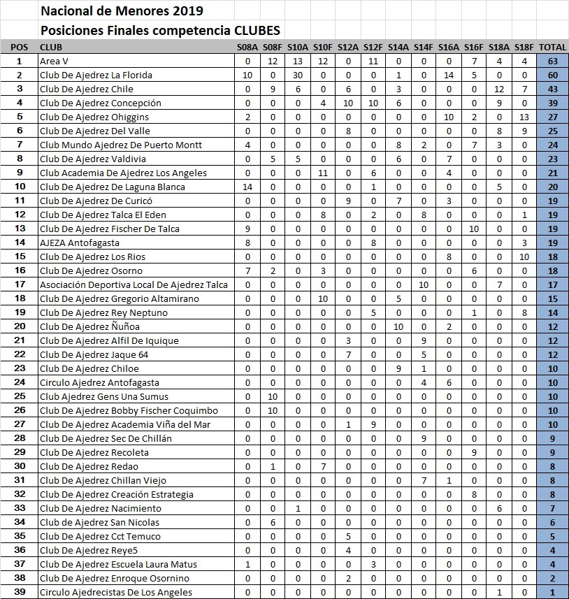 | Club Ajedrez Chess Viña (AREA V) - V región | 29 de Diciembre de 2018 | Bases - Resultados |