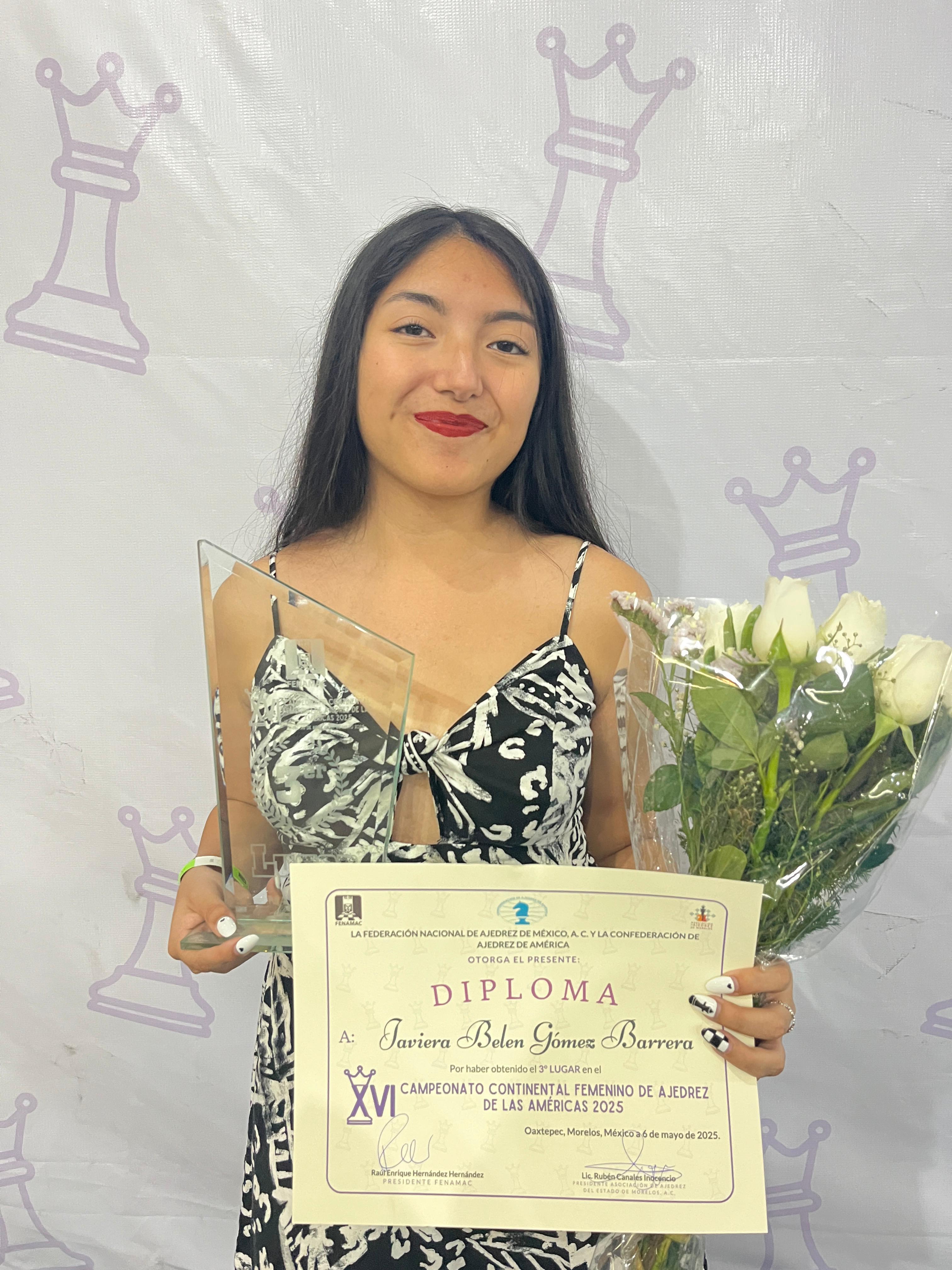 La Maestra Internacional de Ajedrez Javiera Gómez Barrera obtuvo el Tercer Lugar en el XVI Campeonato Continental Femenino de Ajedrez de Las Américas 2025, realizado en Oaxtepec estado de Morelos, México desde el 30 de Abril al 07 de Mayo. En esta competencia participaron 63 deportistas de 13 países del Continente. La jugadora N 1 de Chile, obtuvo 6,5 puntos ganando la medalla de Bronce. Fue una competencia muy exigente, de muy alto nivel en el cual participaron las mejores ajedrecistas de América.