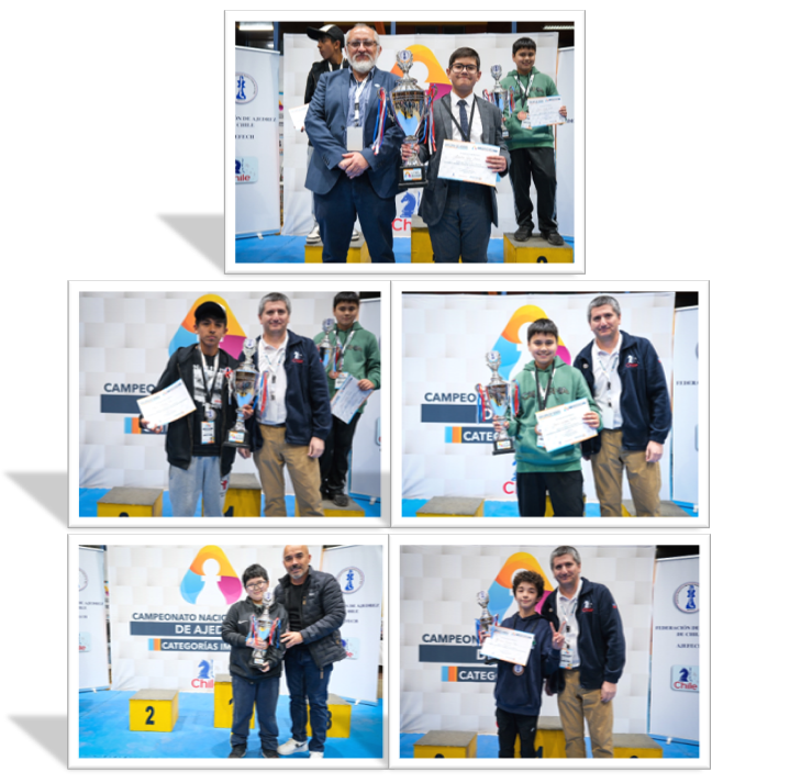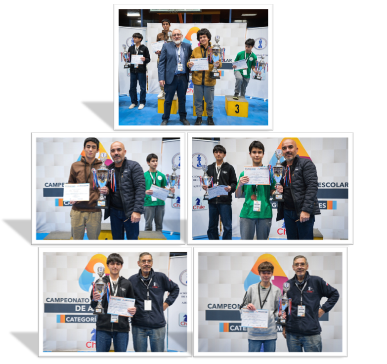 1er lugar: Vicente Elías Muñoz Venegas (Club Ajedrez Cordillera) 2do lugar: Steven Chacón Olortegui (Club de Ajedrez Plaza de Armas) 3er lugar: Franco Alessandro Escobar Castro (Agrupación Social, Cultural y Deportiva Ajedrez O"Higgins) 4to lugar: Mateo Isaías Donoso Chávez (Club de Puente Alto) 5to lugar: Arturo Nicolás Araneda Alcaíno (Club Academia de Ajedrez Siete Hojas) |
