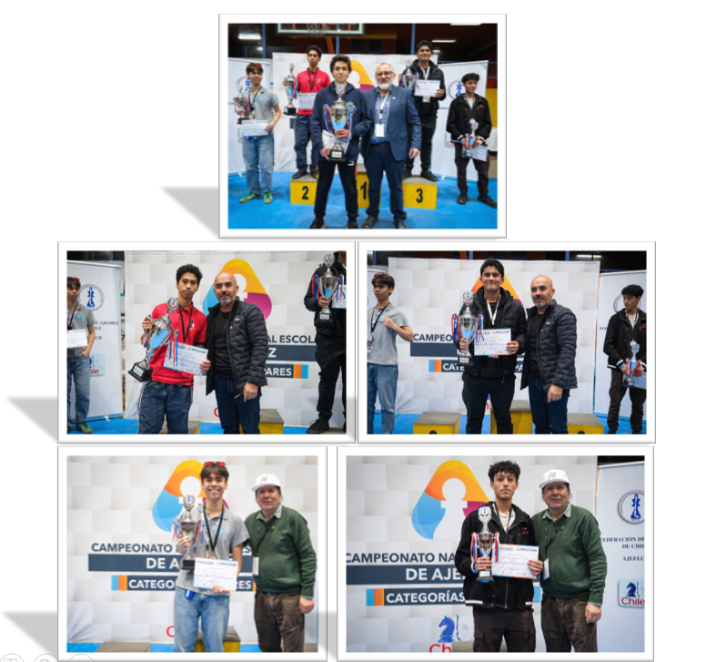 1er lugar: Rafael Isaac Riquelme Chavarría (Club de Ajedrez Concepción del Bío Bío) 2do lugar: Matías Pablo Almonacid Soto (Club de Ajedrez Enroque Osornino) 3er lugar: Cristóbal Farías Beseler (Club Ajedrez Cordillera) 4to lugar: Santiago Barriga Monsalves (Club de Ajedrez de Talagante) 5to lugar: Agustín Saldivia Coronella (Club de Ajedrez Jugadas Estratégicas) |