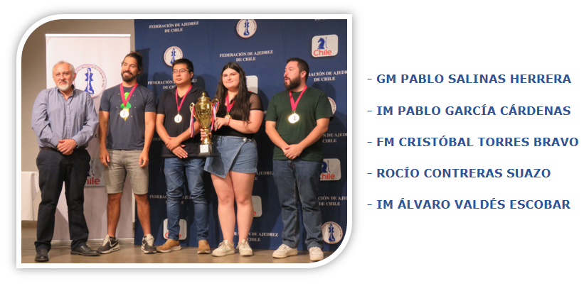 | 5to lugar | IM NICOLÁS ABARCA GONZÁLEZ | Club de Ajedrez Chile |