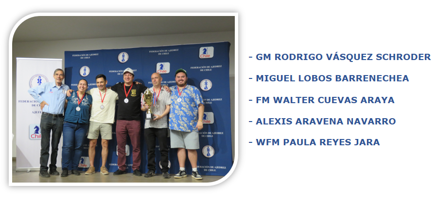 | 2do lugar | GM RODRIGO VÁSQUEZ SCHROEDER | Club de Ajedrez Chile |
