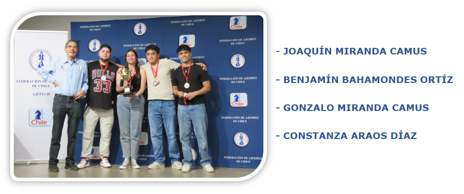 | 3er lugar | JOSÉ SOZA DE LA CARRERA | Club Academia Ajedrez Los Ángeles Bío Bío |