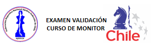 La Comisión de Educación de la Federación de Ajedrez de Chile informa que el día 18 de mayo a las 15.00 hrs., en el recinto deportivo donde se efectuará el Campeonato Nacional de la Niñez, ubicado en ubicado en Avenida Paul Harris Sur No 701, Las Condes, se tomará examen para todos quienes en alguna oportunidad efectuaron algún Curso de Monitor en la Federación de Ajedrez y que por distintas razones no pudieron obtener la certificación en forma oportuna, en los casos y forma que se indica :