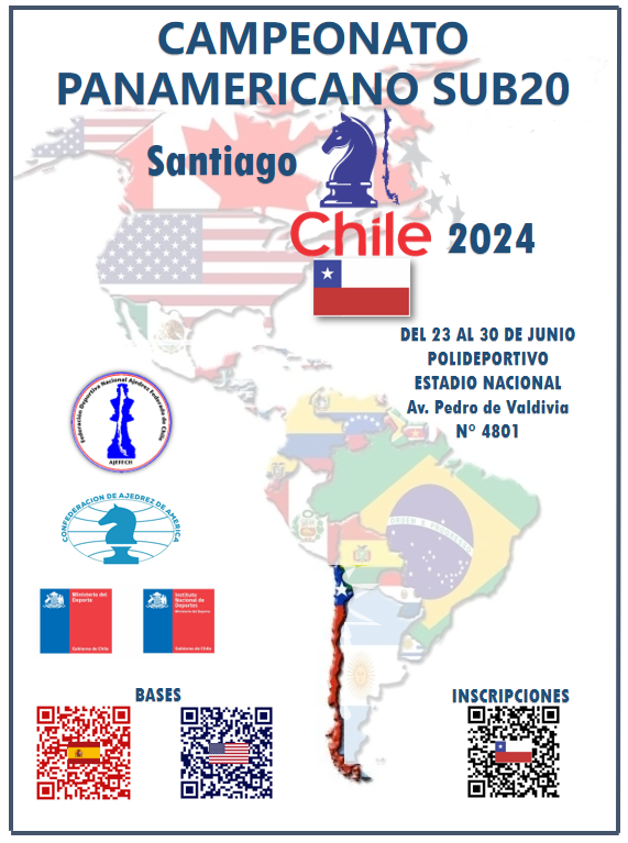 La Federación de Ajedrez de Chile, y la Confederación de ajedrez de Las Américas (CCA) tienen el agrado de invitar a todas las Federaciones de América al Panamericano Sub 20, que se realizará en la ciudad de Santiago de Chile del 23 al 30 de Junio de 2024.