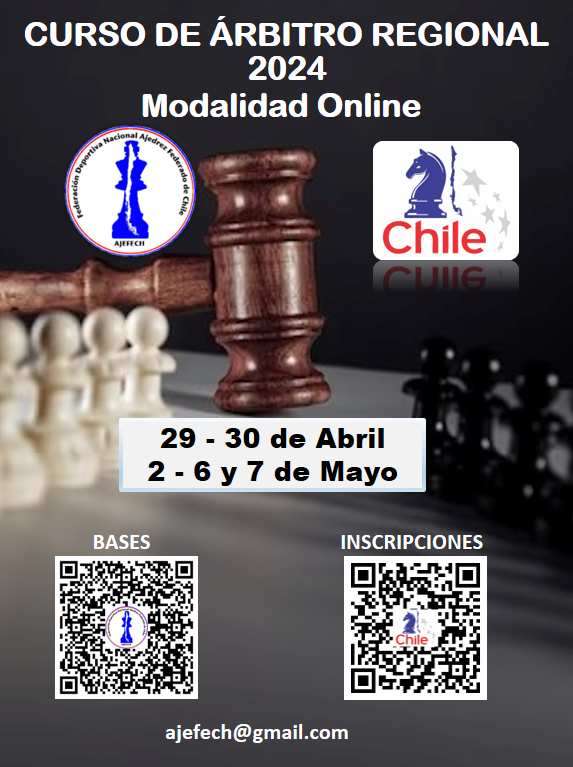 La Federación de Ajedrez invita a participar en los Curso de Capacitación para formar Árbitros Regionales y Monitores, que se llevaran a efecto en Abril y Mayo de manera online, con mesa de examen presencial.