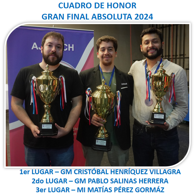 La Federación Chilena de Ajedrez Felicita a los 82 Clasificados a la Final de Chile Absoluta 2024, que se realizará entre el 19 y el 26 de febrero 2024, en el Centro Cultural de la Ilustre Municipalidad de Lo Prado.
