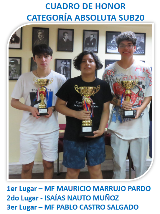 | 16 | CASTILLO GRADO | Augusto | 3406016 | Club de Ajedrez La Florida |