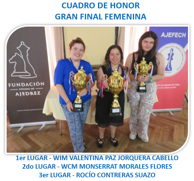 | 23 | DIAZ LILLO | Fernanda | 3412423 | Asociación Deportiva Regional de Ajedrez V Región |