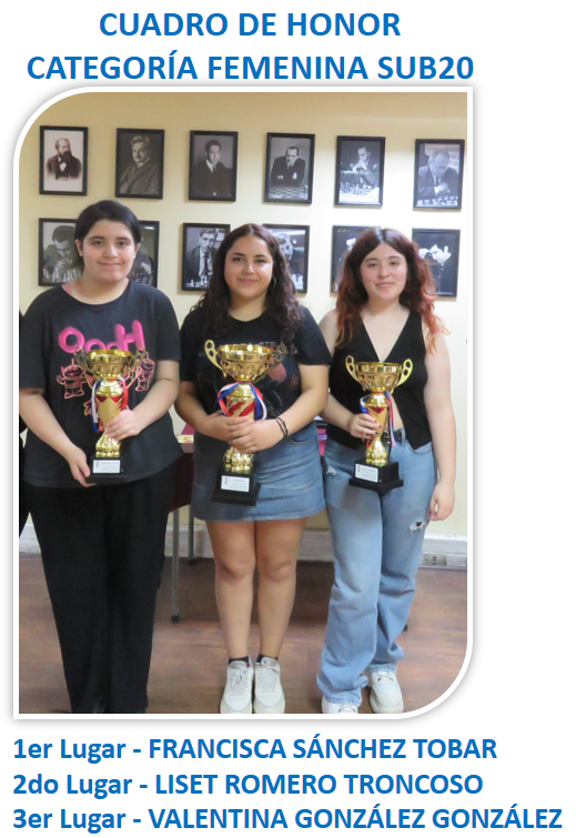| 30 | IZQUIERDO GARCES | Rosario | 3461386 | Club de Ajedrez Cordillera |